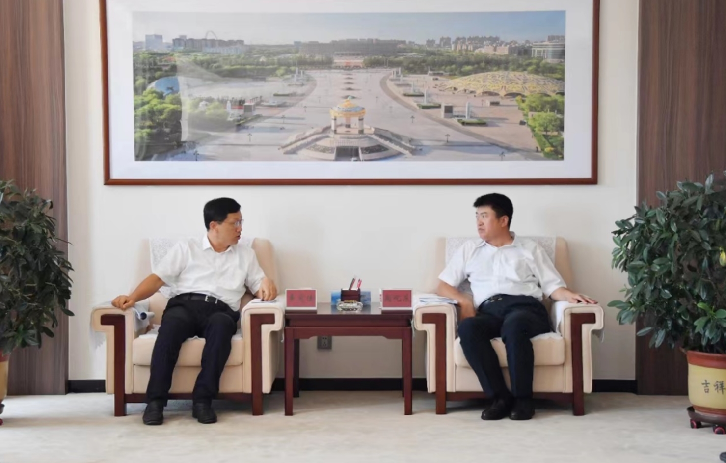 8月8日,水發(fā)高科黨委書記、董事長車憲法一行赴鄂爾多斯市,與鄂爾多斯市高新技術(shù)產(chǎn)業(yè)開發(fā)區(qū)黨工委書記、東勝區(qū)區(qū)委書記高屹東座談,雙方圍繞水利水務(wù)、清潔能源等領(lǐng)域深入交流。