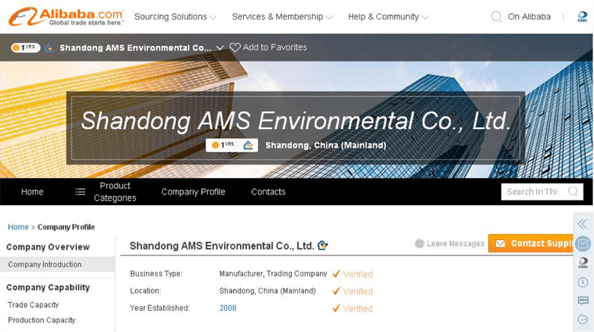阿里巴巴國際站在世界企業(yè)間B2B電子商務領域享有盛譽,號稱全球最大的商務交流社區(qū)和網上交易市場。公司為進一步開拓國外市場、加大海外市場的溝通與宣傳,進一步提升公司的業(yè)務量,2017年12月5山東奧美環(huán)境股份有限公司網上店鋪在阿里巴巴國際站開店?,F在可以登錄https://www.alibaba.com/(國際站官網)搜索Shandong AMS Environmental Co. , Ltd. (公司名稱)或相關產品的英文名稱查詢公司產品具體信息。